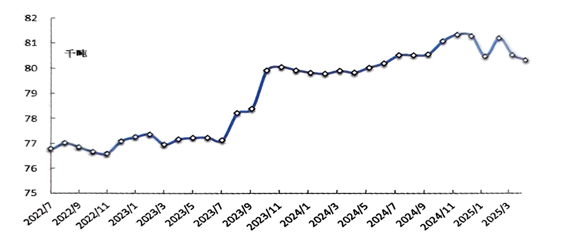 2025年5月,國內電解鋁生產能力穩(wěn)中有增,截至5月底建成產能4467萬噸/年,運行產能4397萬噸/年,環(huán)比增加4萬噸/年。本月運行產能增量主要來自青海等新增項目的釋放;云南等部分地區(qū)新建項目持續(xù)投產,但產能指標均來自在產產能的置換,部分省份的產能和產量將會受到影響,但整體生產能力理論上不會因此而發(fā)生變化。經調整,4月份產量為362.4萬噸;預計5月份產量為374.6萬噸,同比增長2.5%,日均產量12.08萬噸,與上個月基本持平。
